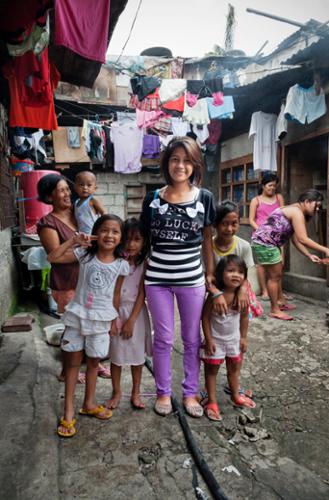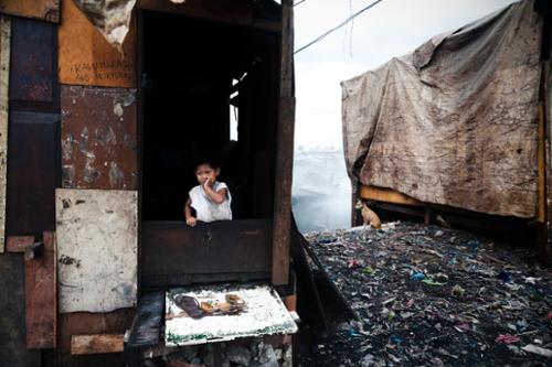 Les enfants regardent leurs méres partir travailler. Tondo, Manille