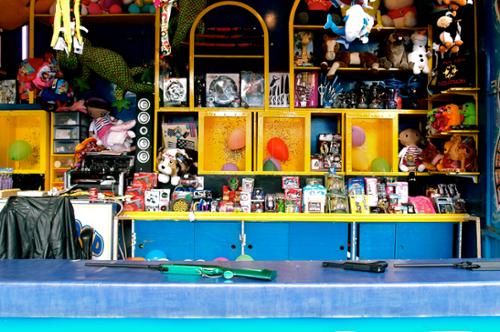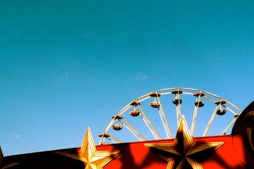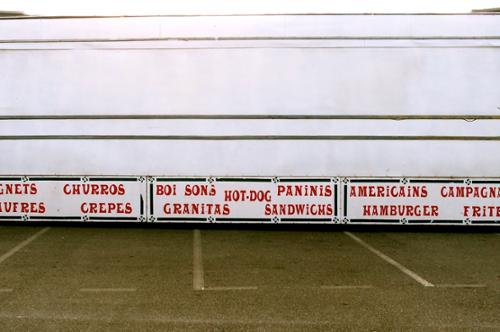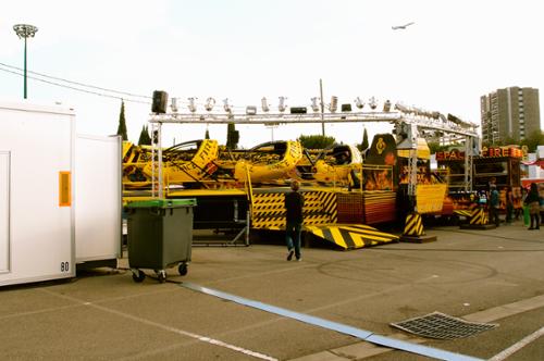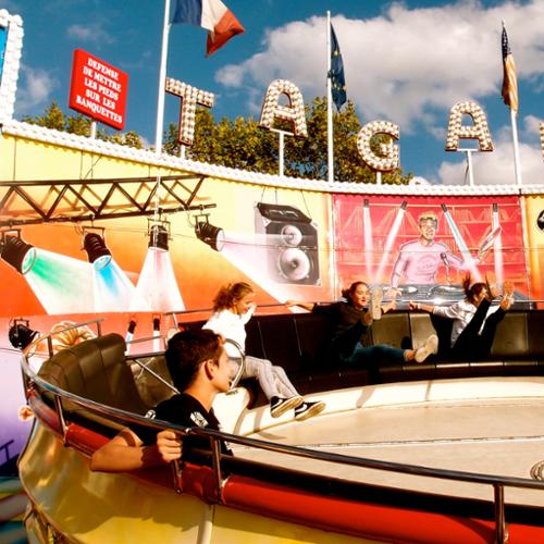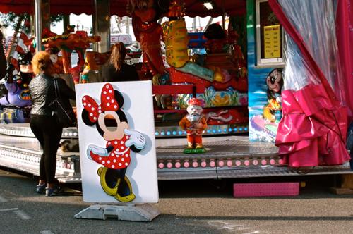 Cette série photographique n'a pas été préméditée. Elle est juste née d'une sensation très forte et envahissante, d'une bizarrerie. La fin de l'été, un samedi après-midi, une fête foraine. J'aurai dû être emportée par l'euphorie, la liesse populaire, les odeurs de Barbapapa, la musique... mais rien de cela. Le vide, personne, juste quelques rares adolescents en recherche de sensations, des adultes égarés, des attractions désertées... quelque chose manquait. Le monde ? La joie ? L'argent ? La crise hantait et donnait à voir une France désenchantée jusque dans les incontournables espaces populaires ; semblable à un Wonderland qui aurait perdu de sa superbe et où on remarquerait la rouille sous la peinture et le carton des couronnes... Cela s'est imposé à moi, envie de raconter cet entre parenthèse, la confusion, le trouble et l'impression de vertige qui m'ont envahie ; cette réalité crue, d'une vacuité infinie, vide. J'étais là, à la frontière d'un territoire plein de promesses fabuleuses et qui ne peut plus les tenir. J'étais le témoin d'une agonie, d'une véritable tragédie.
