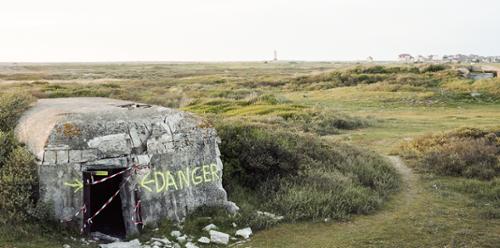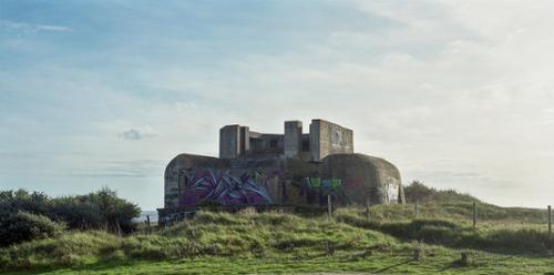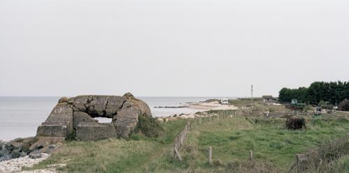 Mon travail, dans cette série intitulée "Atlantikwall", porte sur les blockhaus du Mur de l'Atlantique. Ce cheminement photographique se concentre sur la côte française et est effectué au moyen d'une chambre photographique équipée d'un dos "roll-film" au format 6x12, me permettant des prises de vue panoramiques. Le choix de ce matériel s'explique par une volonté de pouvoir utiliser la technique du décentrement, pour les éléments d'architecture, mais aussi de retransmettre, par ce ratio 2 : 1, une vision humaine. La présence des bunkers, le long des côtes françaises, est devenu, pour la plupart d'entre nous, un paysage de vacances que l'on voit sans voir, rappelant de mauvais souvenirs. Ces ouvrages sont effectivement les seules traces matérielles de l'occupation allemande, et notamment de son aspect économique, au cours de la Seconde Guerre mondiale. Cette gigantesque entreprise de l'Allemagne nazie devait, pour des raisons stratégiques, fonder les limes et marquer le territoire d'un nouvel empire, s'étendant de la Norvège au Sud de la France. Pour autant, leur évocation crée un malaise, un sentiment de culpabilité taboue. En effet, près de 15 000 entreprises françaises ont collaboré avec l'organisation Todt pour la construction de ce mur de l'Atlantique, assurant par la même occasion, un véritable poumon économique au régime de Vichy. Cependant, ces vestiges en béton, réputés indestructibles, s'effacent peu à peu dans le paysage, devenant par endroit invisibles. Outre la végétation envahissante, l'érosion, par le phénomène de flux et reflux des marées, déstabilise les sols et fait mouvoir ces monolithes fascinants en les ensablant, voir en les faisant choir du haut des falaises. A cela s'ajoute la volonté de certaines autorités locales à les détruire, jugeant ces ouvrages dangereux et incompatibles avec les activités humaines contemporaines. Ce phénomène entraîne un effacement dans nos mémoires collectives de ce qu'a pu être le collaborationnisme mais aussi le travail obligatoire de milliers de travailleurs. Pourtant, les blockhaus, quel que soit leur état, sont réappropriés et connaissent des destinées autres que celles prévues originellement. Il est fréquent de voir ces lieux devenir des squats pour sans-abris, des aires de jeux pour enfants l'été venu, des supports bruts pour tagueurs, mais aussi, plus étonnant, devenir des fondations pour des bâtiments, des bergeries, des dépendances... Ainsi aurions-nous peut-être là l'exemple de la capacité de l'Homme à voir vers l'avenir et à ne pas s'encombrer d'un passé trop pesant.