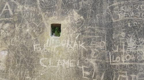 Murs tagués par plusieurs mains à différentes périodes, matières collées, clouées... le résultat éphémère est souvent très pictural.