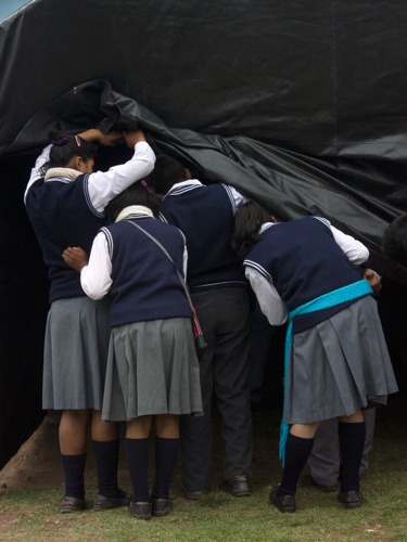 Durant un atelier photographique en décembre 2017 dans un collège perdu dans les montagnes, proche du village de Andahuaylillas, j’ai réalisé des portraits de ces jeunes péruviens avec un dispositif studio simple. Tout a commencé par une rencontre, celle de Silvia, artiste sculpteur à Lima, avec qui j’ai liée une belle amitié. Ayant l’envie forte de m’extirper de cette ville gigantesque, Silvia me conseille d’aller dans un village des Andes, non loin de Cusco, dans le sud du Pérou. Là-bas, son ami Jero, photographe, s’occupe du Centre culturel et associatif Qorioorqo d’Andahuaylillas. Suivant ses conseils, je décide sans attendre de partir pour trois semaines, sans savoir ce qui m’y attendait. Assez vite, je commence à participer et à aider l’association dans les différents ateliers que l’association mène auprès des communautés environnantes et dans les écoles. Dans le collège de Kuntur Kallpa, perdu dans les montagnes au- dessus du village d’Andahuaylillas, je me suis retrouvée à coordonner et à réaliser avec Jero des ateliers de découverte à la photographie à des enfants de 10 à 14 ans qui me parlait mi-quechua mi-espagnol. Durant toute une semaine, j’ai appris à communiquer dans une langue inconnue, tout en échangeant sur la photographie.