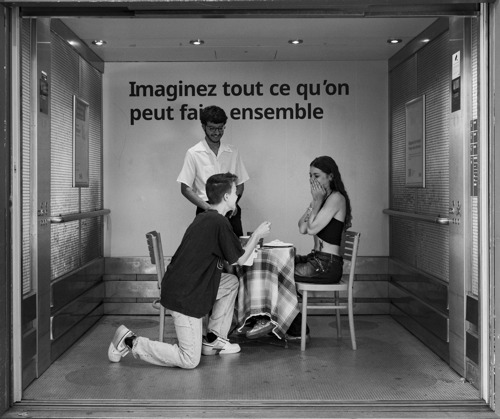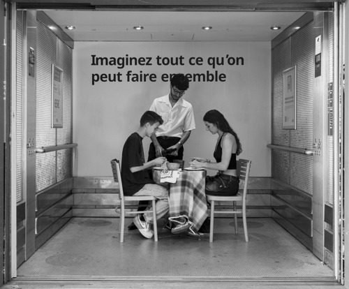 pour ce concours ayant pour thème les ascenseurs j'ai choisi une approche décalée . Les ascenseurs étant des lieux assez communs j'ai voulu crée une ambiance décaler et original Cette série peut être abordé comme une balade au travers différent étage qui présentent des Mis en scène dans des ascenseurs
