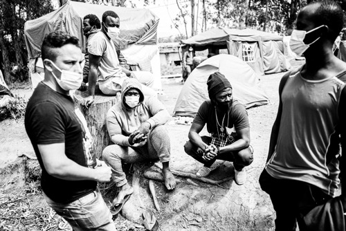 No one leaves home unless home is the mouth of a shark (Personne n 'abandonne sa maison a moins que celle-ci soit la seule d un requin ), de Warsan Shire Depuis 2019 ,le nombre d' immigrés provenant des pays voisins (Mauritanie,Gambie ,Maroc,sahar occidental ) , á destination des Canaries n'a cessé de croitre . Ils veulent pouvoir rejoindre la péninsule ibérique ,porte de l'Europe .Et le seul moyen d y arriver , c' est obtenir l 'asile politique .Mais en temps de pandémie ,ces immigres ,a la recherche d une meilleure vie ,ne font pas partie des priorités européennes . En attendant de régler leur situation,asile politique ou expulsion, l administration de Tenerife (Iles Canaries ,Espagne ) a du réquisitionné d’ anciens bâtiments abandonnés pour héberger toutes ces personnes ,3 au total.Un de ces camps se trouve a Las Raices (Racines en français ...) La capacité d’ accueil est bien sur largement dépassé .D’ou la présence de tentes improvisées devant le camp de Las Raíces ,une centaine de personnes ont abandonne le camp pour réclamer de meilleurs conditions de vie . Je photographie ces personnes qui vivent dans le camp de Las Raices ou dans des tentes ,qui sont comme ces espagnols , italiens ,l français ,portugais ,qui á un moment donné de l ‘histoire, se sont vues contraints de quitter leur famille, leurs maisons ,leurs villages ,leurs pays ,fuyant la misère ,l’injustice social ,persécutions religieuses . J'espere ainsi que l 'on pourra connaitre leur histoire ,histoire tristes mais qui ne cessent de se répéter ces derniers décennies .