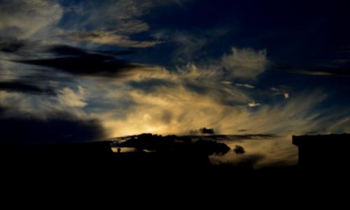 J'aime chasser les nuages. Certains sont doux comme des flocons de neige et d'une extrême blancheur. D'autres plus hostiles, en colère, se déplacent vite et s'amusent à se transformer en vagues chaotiques, en prenant la forme d'un animal ou en se prenant pour des êtres fantomatiques (comme celui que je présente) parsemés de couleur violette dans toutes ses nuances. Le ciel est une réserve inépuisable d'images et nous offre des spectacles grandioses qui n'arrêtent pas de nous émerveiller.