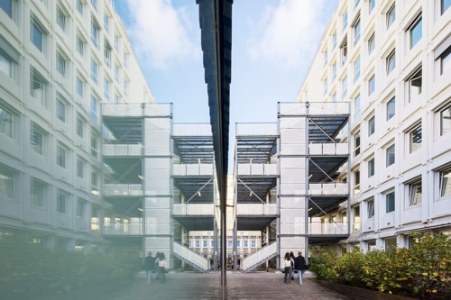 Fondée en 2019, l'Université Paris Cité (UPCité) fête en 2025 ses cinq années d'existence en célébrant la variété et la richesse de son patrimoine architectural. Marquant la fusion des universités Paris-Descartes et Paris-Diderot avec l'intégration de l'institut de physique du globe de Paris (IPGP), l'Université Paris Cité regroupe 34 sites en région parisienne et aux DOM-TOM. Autant d'époques, de styles, de visions architecturales au service de l'enseignement, de la recherche et des étudiants. Pour célébrer cet anniversaire, l'UPCité a fait appel à mon savoir-faire de photographe d'architecture pour couvrir les différents sites universitaires et proposer un regard d'auteur sur son patrimoine architectural et artistique. Au final, 100 photographies originales ont été livrées après 6 semaines de repérage et de prises de vues, pour publication d'un catalogue anniversaire et d'une exposition se déroulant tout au long de l'année 2025 sur les façades des principaux sites de l’Université. Je vous offre ici ma vision personnelle du projet, mon regard de photographe au-delà de sa présentation officielle. Ma première découverte de chaque site visité a eu pour sujet leurs façades et leur architecture extérieure. De la plus classique à la plus contemporaine, de la plus moderne à la plus végétale, chaque façade est une introduction aux bâtiments, à leur histoire, à leurs promesses. Cette première sélection regroupe ainsi les façades, les parvis, les cours intérieures et les vues extérieures au niveau du sol.