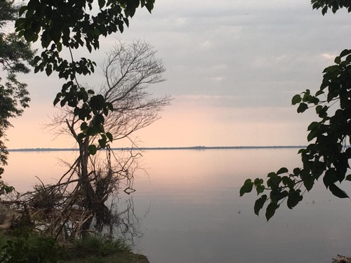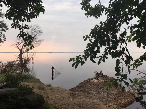 Un pêcheur tend son filet en plein coucher du soleil sur le Lac Maï-Ndombe, à l'Ouest de la République Démocratique du Congo alors que Richie Lontulungu et ses collègues de voyage observent le coucher du soleil sur le Lac autrefois connu sous le nom de Lac Albert II et ils partagent un verre d'amitié. Richie Lontulungu capture cet instant unique sur son smartphone. Ces événements se déroulent à Inongo, chef-lieu de province de Mai-Ndombe, le samedi 22 février 2020.