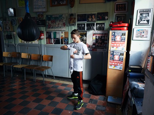 Nous sommes à une dizaine de kilomètres de Charleroi, en Belgique. Ici l’histoire est lourde ; la vie n’est pas simple. Sur son chemin, Thomas Fliche est passé devant d’immenses usines abandonnées et devant les terrils qui entourent la ville. Il ne connaît pas bien cette province wallone, mais il est inspiré et l’histoire qu’il a en tête se confirme dans ces paysages. La nostalgie du lieu, cette tension d’abord et puis ce gamin rencontré un peu par hasard. Killian Dufrenne a 13 ans lorsque le photographe le rencontre pour la première fois, en juillet 2017, lors d’un entraînement de boxe. « Le Kid » est appliqué et montre une certaine maîtrise. Il se donne beaucoup, et son visage prend une autre apparence au fil des rounds. C’est bien, il ne fait pas semblant. Lorsque Thomas enfile des gants et donne quelques directs dans un sac, le garçon le regarde du coin de l’œil et esquisse un petit sourire. Quelques heures plus tard, Killian emmène Thomas faire un tour dans son village. Il est calme, fier de présenter là où il habite. Il a véritablement envie de se raconter. Dans la lignée des essais photographiques au long cours, Thomas Fliche suit et documente depuis deux ans la vie de Killian et de sa famille, et plonge dans l’univers du jeune garçon. Son immersion régulière a permis au photographe de trouver sa juste place et a donné à ce projet une plus grande puissance, une forme de vérité. Le livre, au fil des textes et des 150 photographies présentés, légitime une nouvelle approche en rééquilibrant les forces en présence : les ruines d’un territoire, la jeunesse, le sport.
