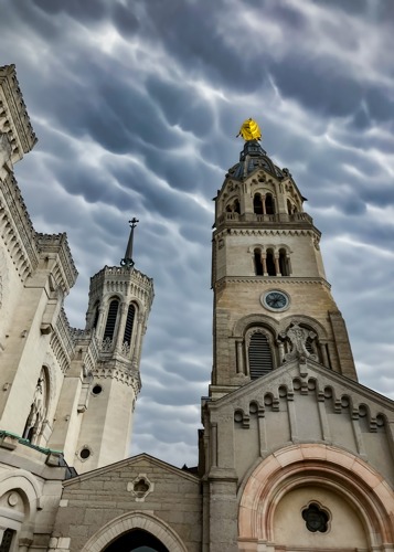 Jolis nuages lenticulaires dans un ciel d'été des Pyrénées Orientales, avec le Pic du Canigou dans le lointain.