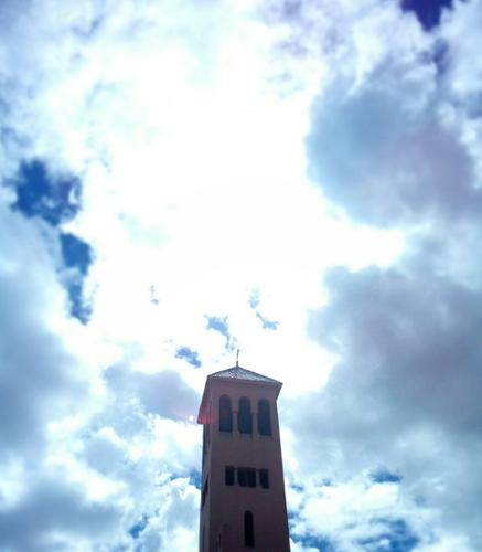 La vue à travers une porte orientale entre neige et soleil