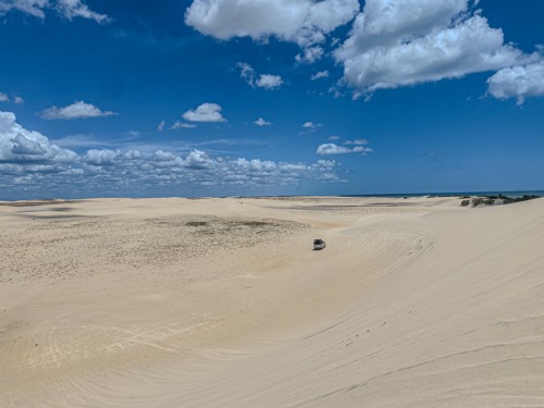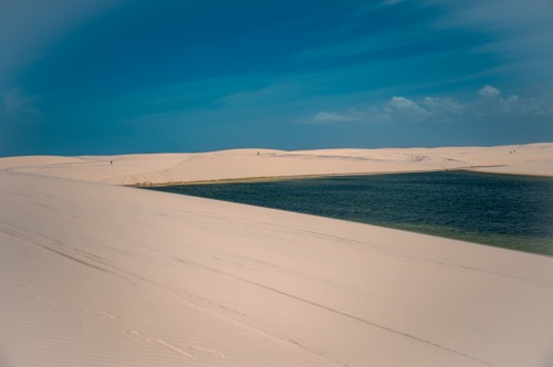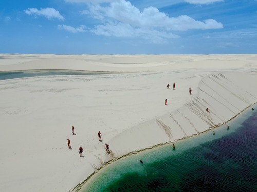 Dunes de sable blanc immaculé, lagunes d'eau turquoise et soleil éclatant, tel est le décor du désert blanc des Lençóis Maranhenses au Brésil ! Au creux des dunes dessinées par le vent, les pluies tropicales emprisonnées ont créé d’immenses lagunes d’eau douce, verte ou bleue. Des plantes indigènes, des zones désertiques, des lagons cristallins, des réserves naturelles d'oiseaux et des mangroves constituent ce désert brésilien hors du commun.