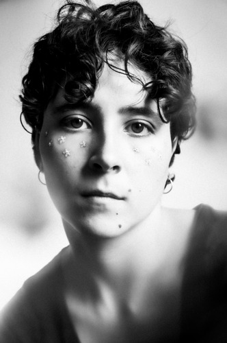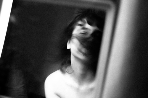 Laisser le noir des mèches de cheveux manger le visage, tout comme le fond noir descend peu à peu derrière le visage.